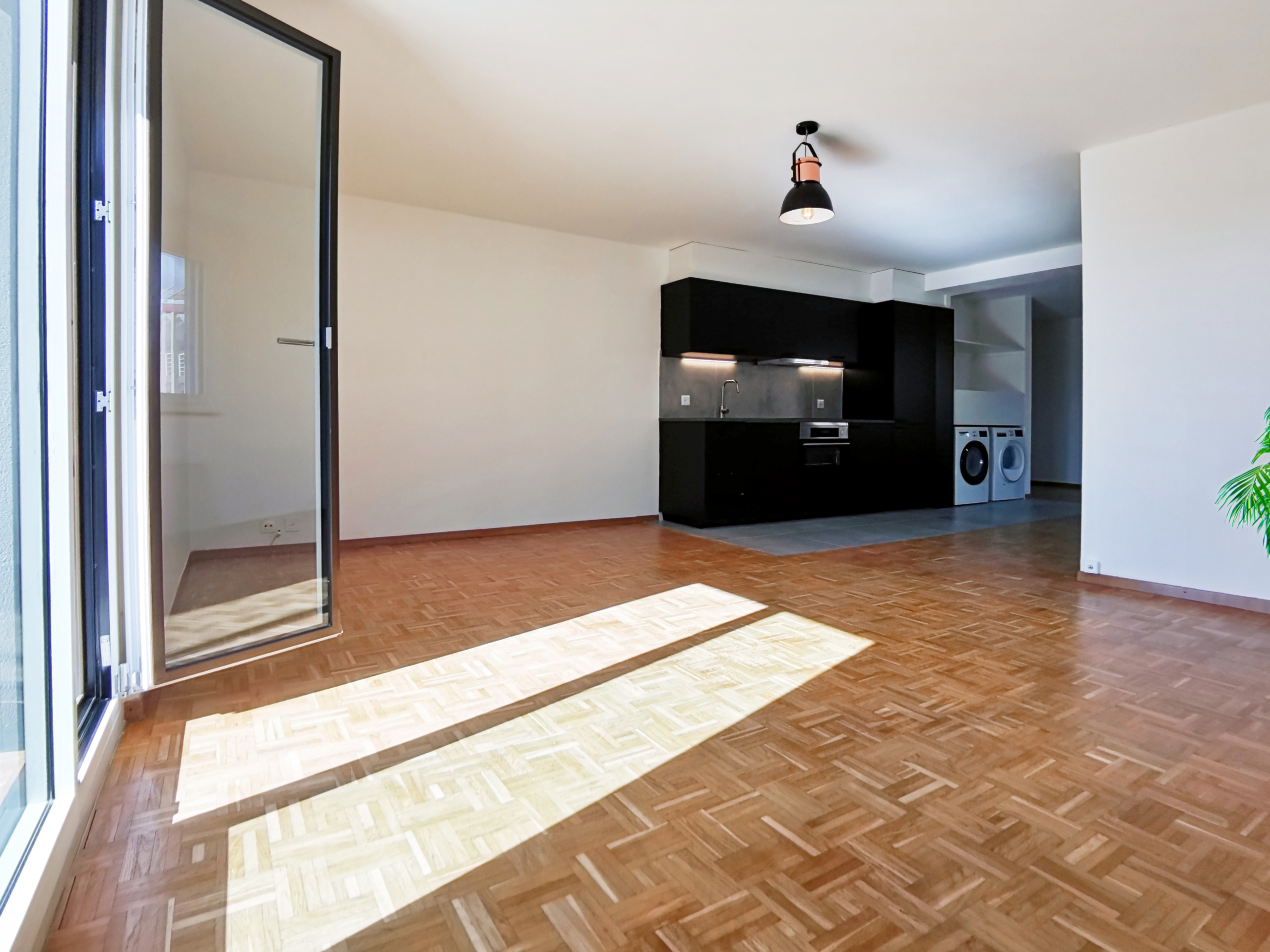 Cet ancien 2,5 pièces, récemment rénové en 2023, dispose d’une spacieuse pièce à vivre modulable selon vos envies. L’espace nuit est bien délimité de la partie jour, que vous pourrez privatiser selon vos envies. La cuisine est équipée, et une buanderie privative a été installée. La salle d’eau comprend une agréable douche à l’italienne, moderne.